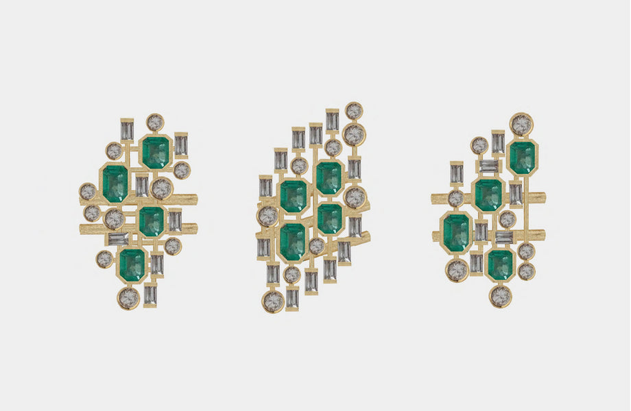 This exquisite bespoke ring has been meticulously crafted in recycled 18ct yellow gold, set with the clients inherited emeralds and diamonds.