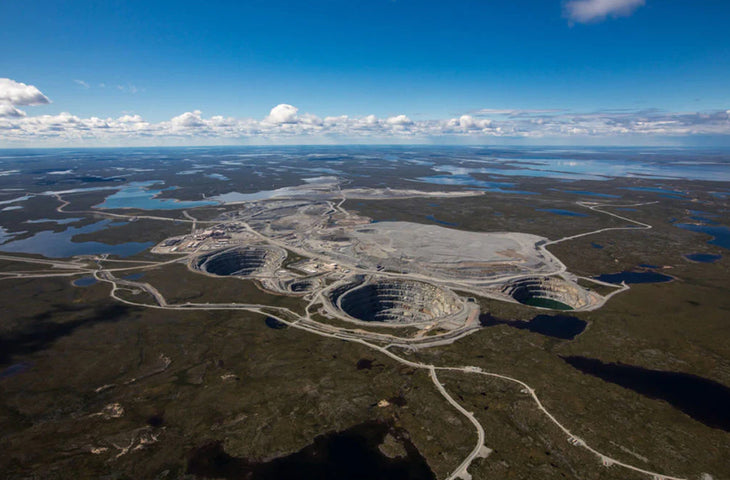 Our smaller Canadian diamonds come from the Ekati Mine, located about 300 kilometres northeast of Yellowknife in the remote tundra. Ekati was the first diamond mine in Canada, and its name—meaning “Fat Lake” in the Tłįchǫ language, reflects the region’s deep Indigenous connections.