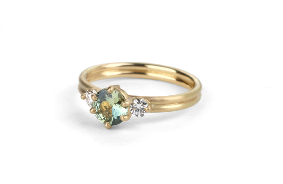 This Trio Dyad Ring features a beautiful Australian sapphire and two natural white diamonds. Hand-fabricated from 18ct gold. See the process below.