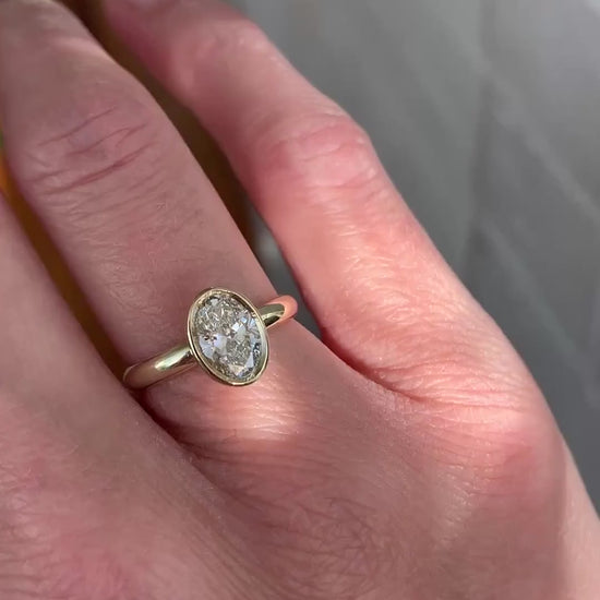 A refined addition to our Convex Collection, the Oval Lab Diamond Ovolo Ring elevates soft curves and tactility. This design features an oval profile ovolo band paired with a shaped bezel setting that fully encloses the diamond. Highly protective for everyday wear, the closed-back setting allows for easy cleaning and ensures the stone maintains its brilliance with minimal upkeep.