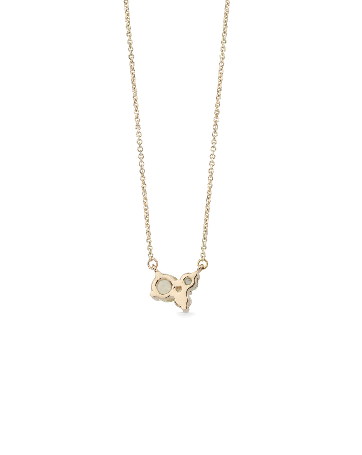 A carefully crafted cluster pendant in 9ct yellow gold with a polished finish. The design features a 0.51ct yellow sapphire from Sri Lanka a 0.12ct green sapphire from Madagascar, and a 0.06ct natural white diamond, their sunny and earthy hues melding well together.